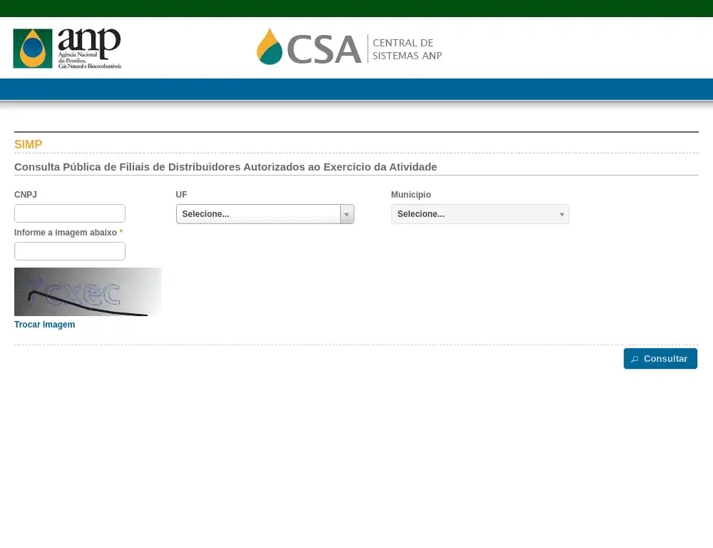 Consulta a base pública de Filiais de Distribuidores Autorizados ao Exercício da Atividade do Sistema de Informações de Movimentação de Produtos (SIMP) no portal da ANP (Agência Nacional do Petróleo, Gás Natual e Biocombustíveis).