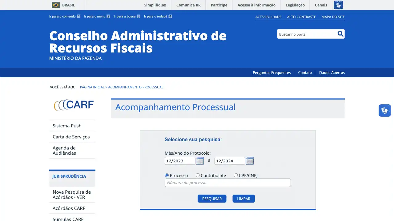 Consulta acompanhamento processual na Conselho Administrativo de Recursos Fiscais (CARF).