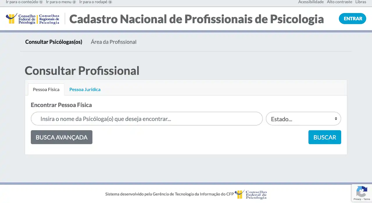 Consulta o cadastro de Psicólogos no CFP (Conselho Federal de Psicologia).
