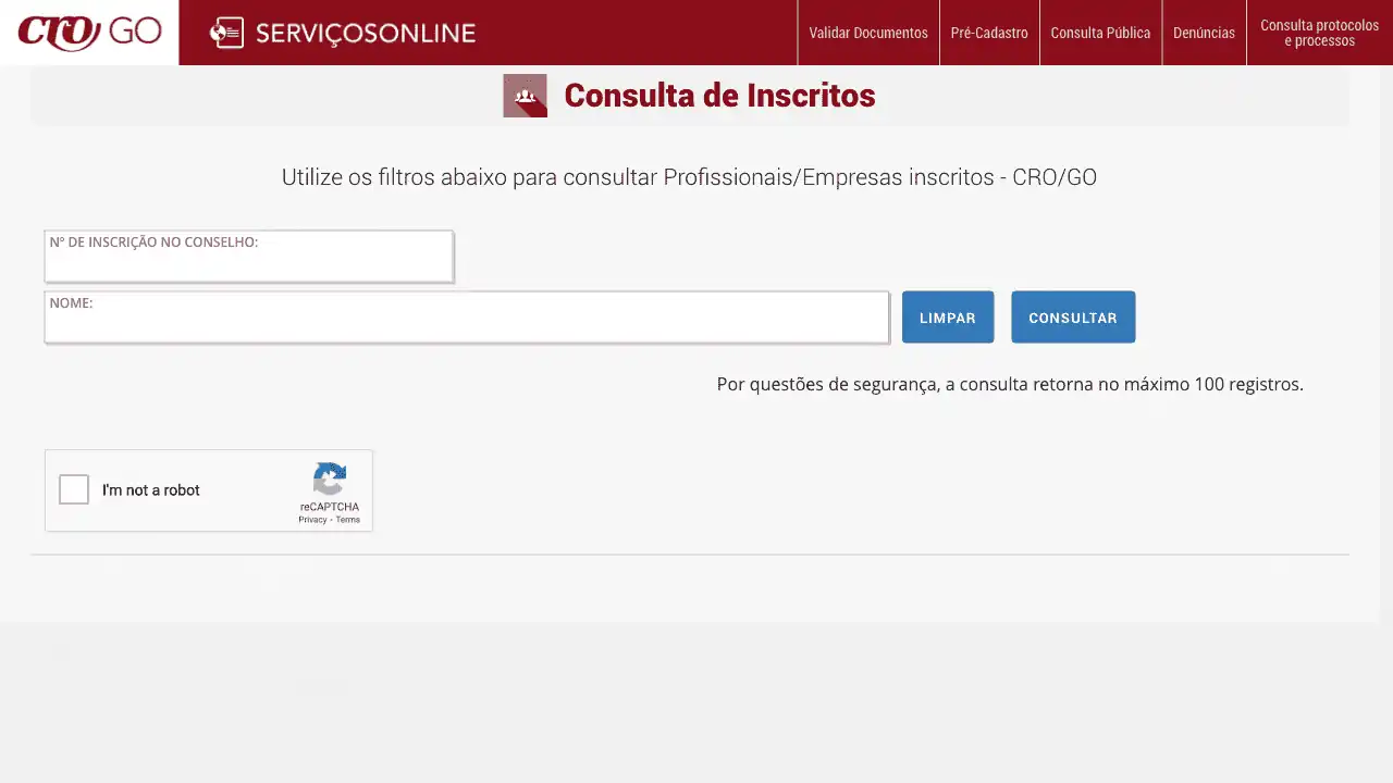 Consulta cadastral de profissionais inscritos no CRO/GO.