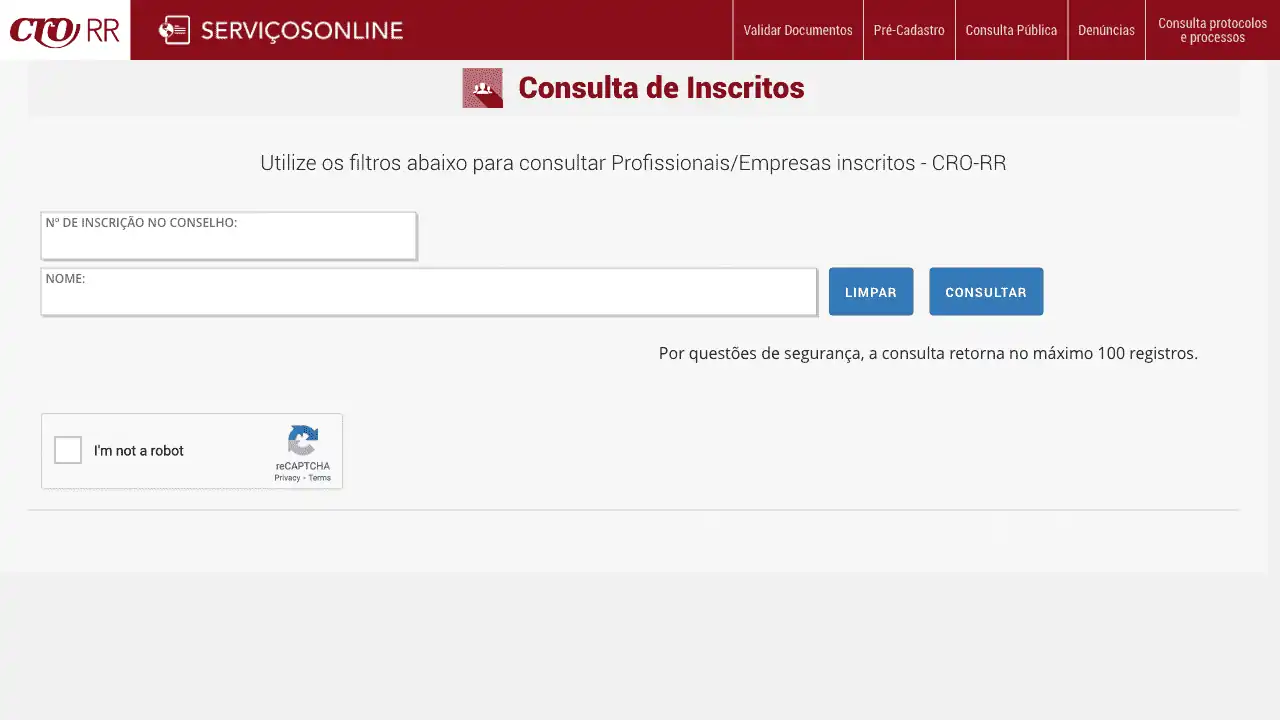Consulta cadastral de profissionais inscritos no CRO/RR.