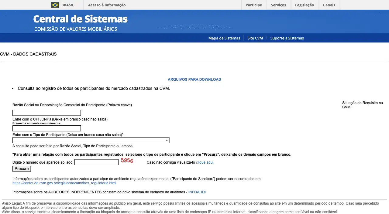 Conheça abaixo o web service (JSON) para consultar CVM / Participante.
