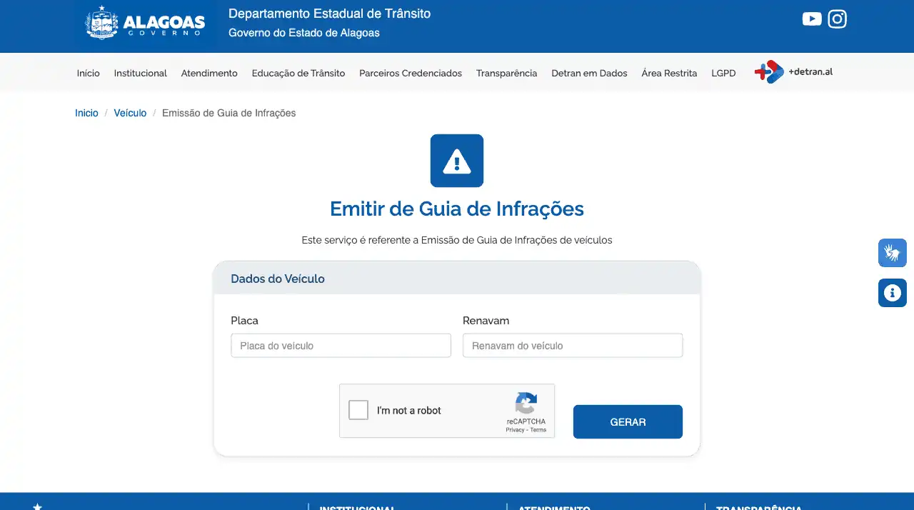 Consulta e emite o PDF da Guia de Infrações de veículos cadastrados no DETRAN de Alagoas (AL), através da placa e número de renavam.