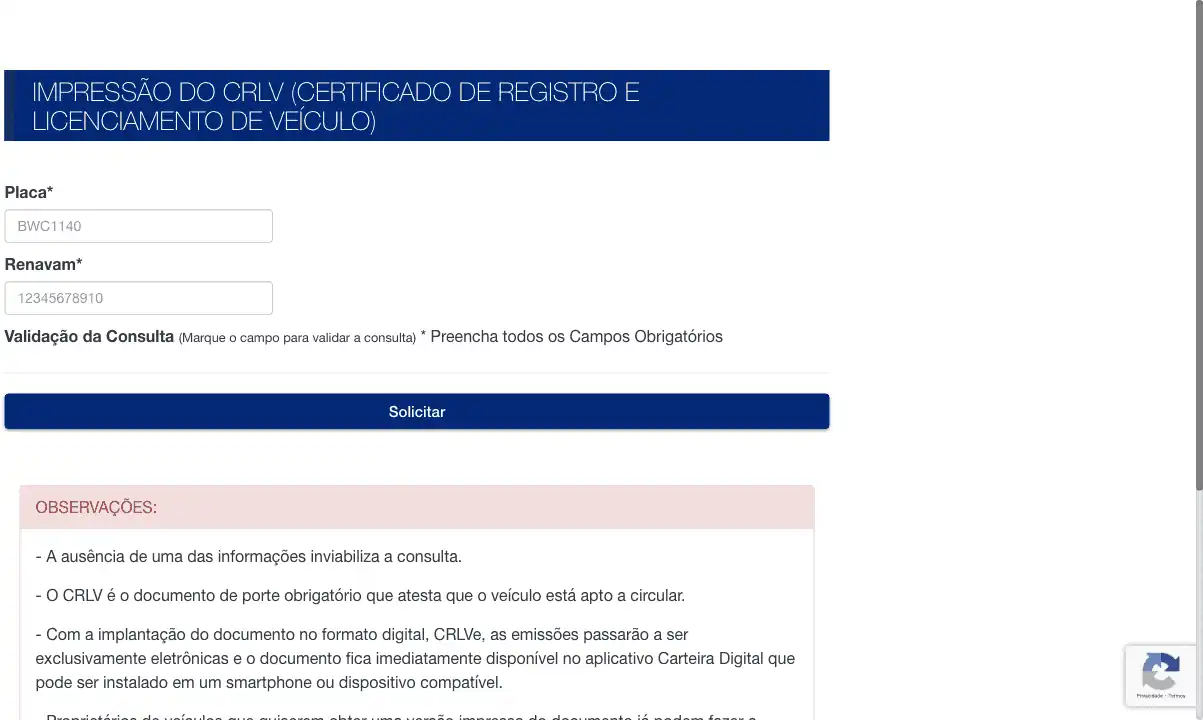 Pode ser usada para emitir o CRLV (documento de veículo) em formato digital.
