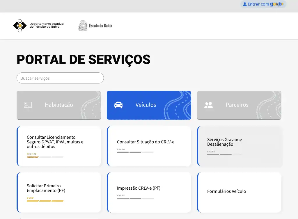 Verifica o andamento do processo de alienação e desalienação do veículo no site do Detran do estado da Bahia.