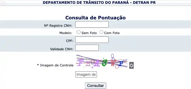 Pode ser usada para consultar a pontuação de uma CNH pelo portal do Detran PR