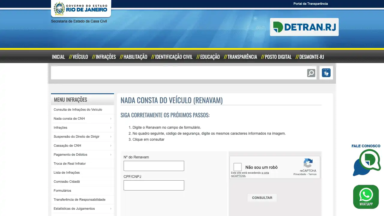 Consulta multas do veículo no Departamento Estadual de Trânsito (DETRAN) do Rio de Janeiro (RJ).