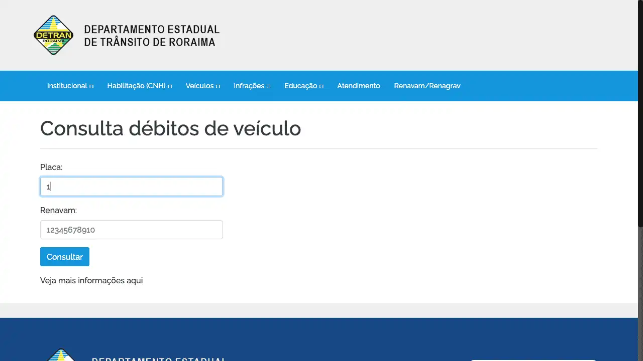 Consulta os dados do veículo e a existência de débitos através da placa e renavam informados.