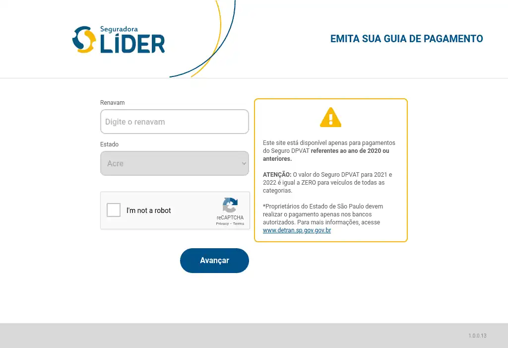 Consulta dados de débitos de Danos Pessoais Causados por Veículos Automotores de Via Terrestre (DPVAT) administrado pela Seguradora Líder, através da placa e número de renavam do veículo.