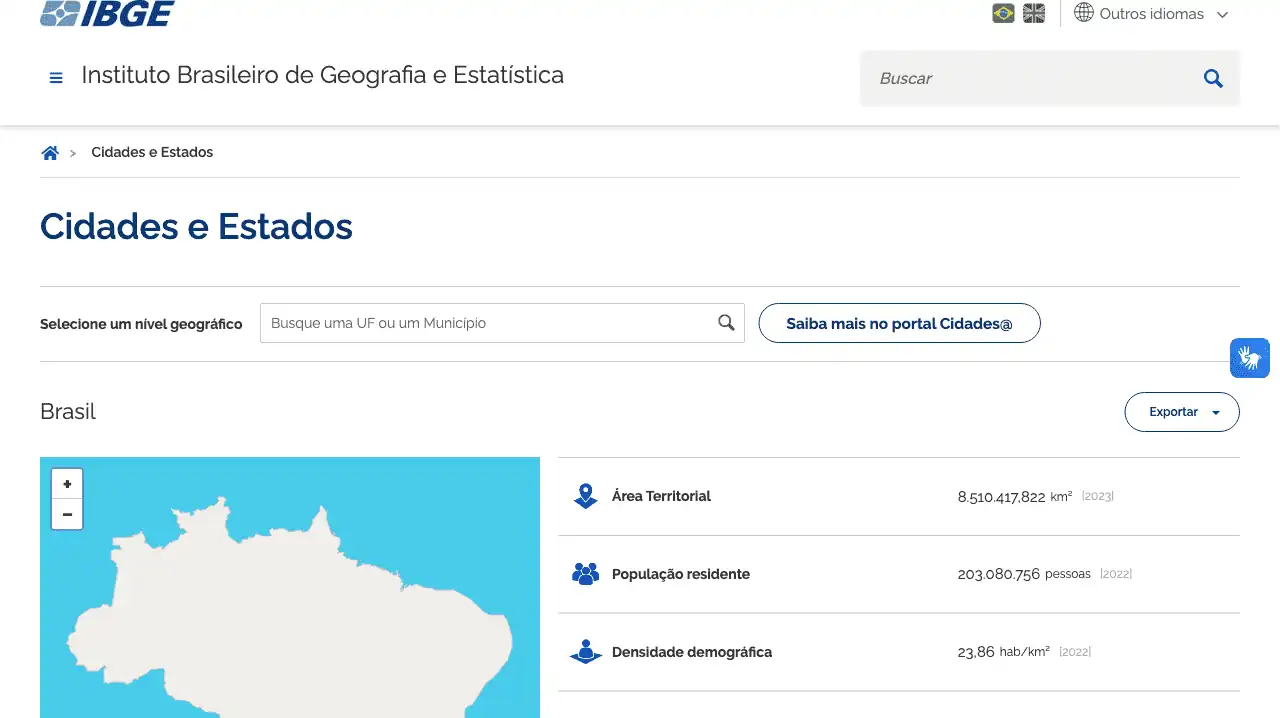 Conheça abaixo o web service (JSON) para consultar IBGE / Área territorial brasileira.