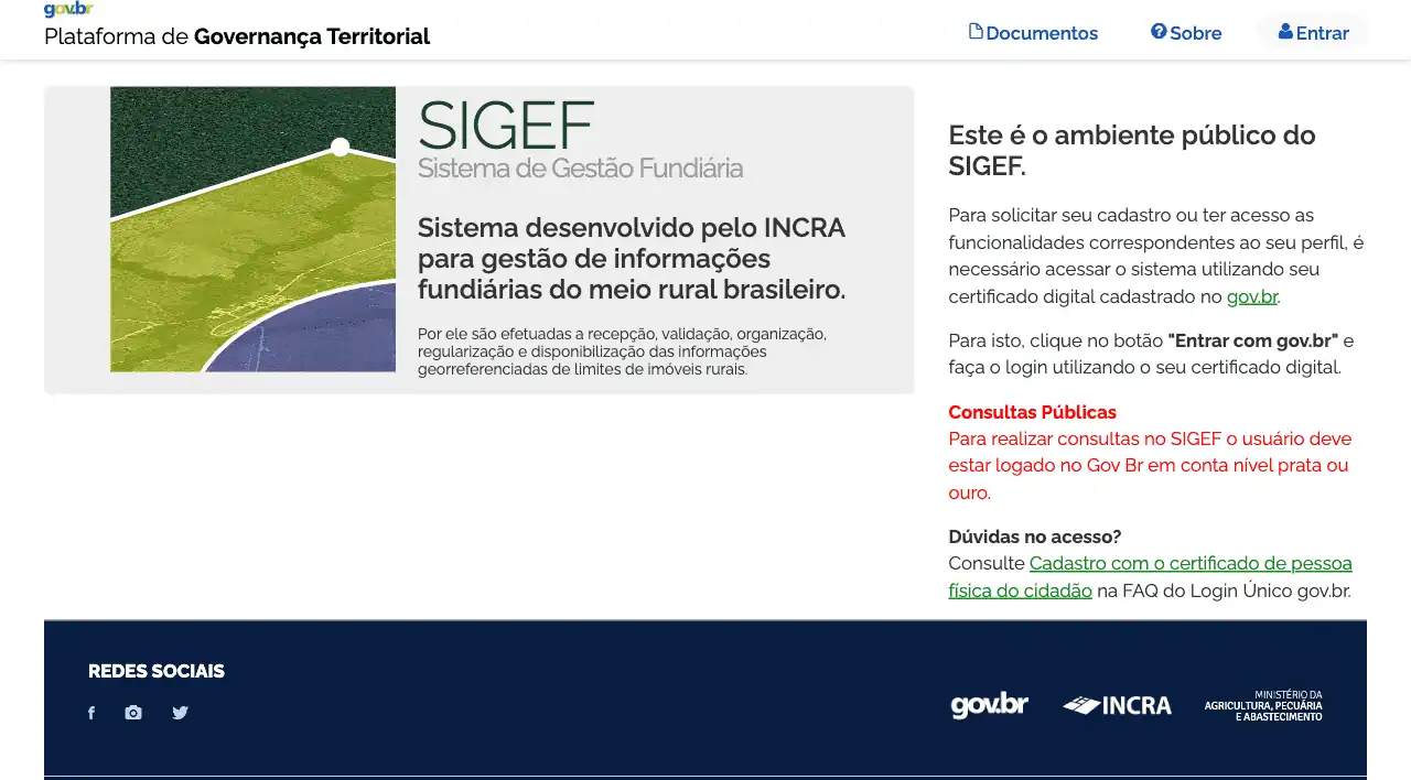 Consulta os requerimentos de um CPF/CNPJ no Sistema de Gestão Fundiária (SIGEF) do INCRA.