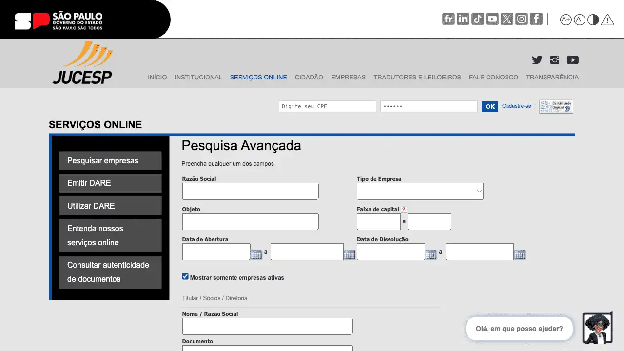 Conheça abaixo o web service (JSON) para consultar Junta Comercial / SP / NIRE (Pesquisa Avançada).