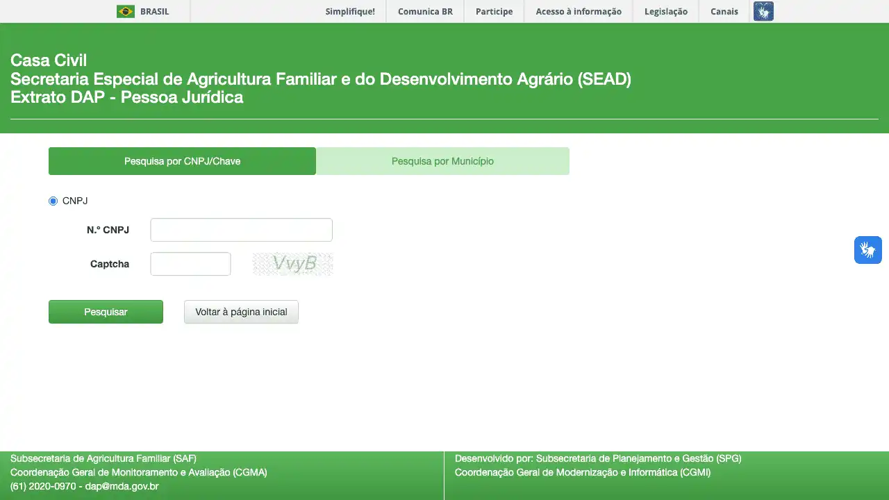 Conheça abaixo o web service (JSON) para consultar MDA / SEAD / Declaração de Aptidão ao PRONAF (DAP).