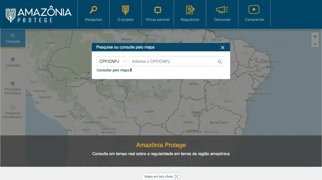 Emite uma certidão de existência de Ação Cívil Pública relacionada a desmatamento de regiões protegidas da Amazônia no portal Amazônia Protege do Ministério Público Federal.