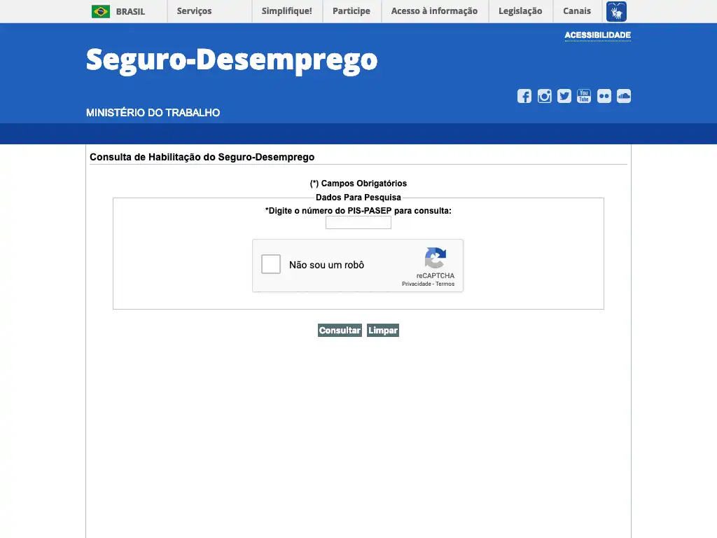 Consulta informações da Habilitação do Seguro Desemprego como tempo de serviço e situação das parcelas, através do número do Programa de Integração Social (PIS) ou Programa de Formação do Patrimônio do Servidor Público (PASEP).