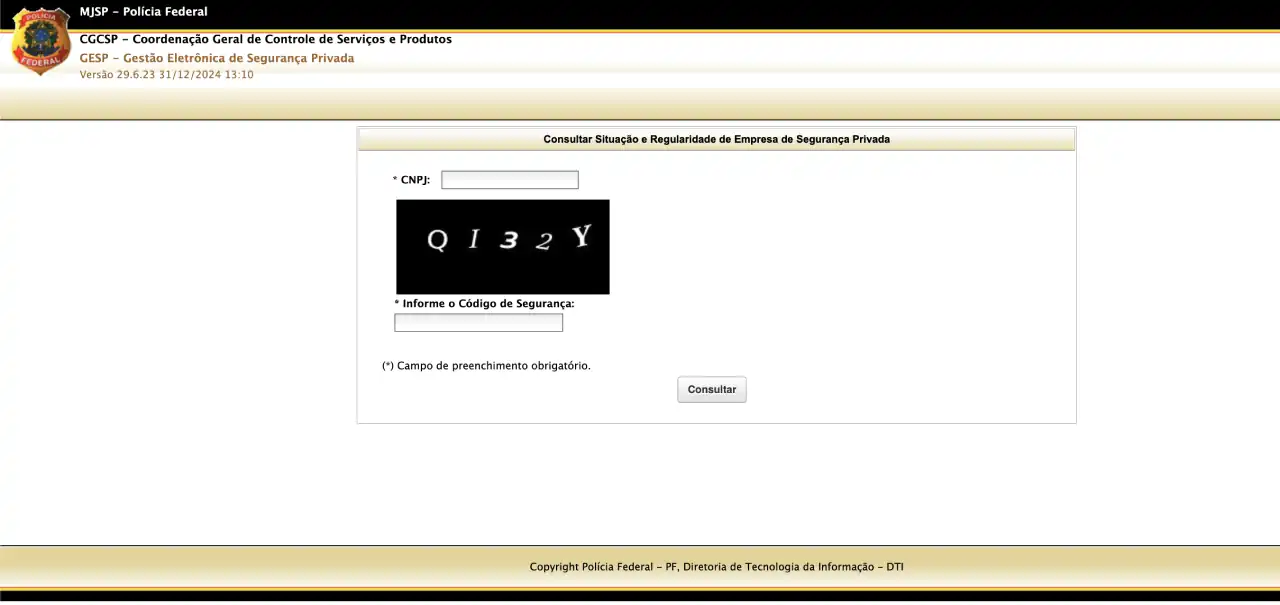 Consulta a Situação e Regularidade de Empresa de Segurança Privada através do CNPJ