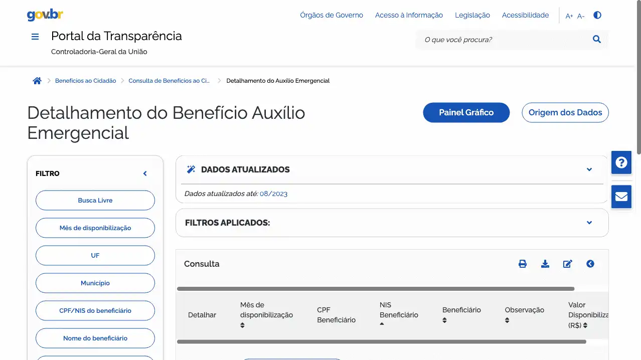Conheça abaixo o web service (JSON) para consultar Portal da Transparência / Auxílio Emergencial.