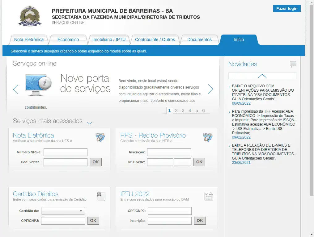 Conheça abaixo o web service (JSON) para consultar Prefeitura / BA / Barreiras / Certidão Negativa de Débitos.