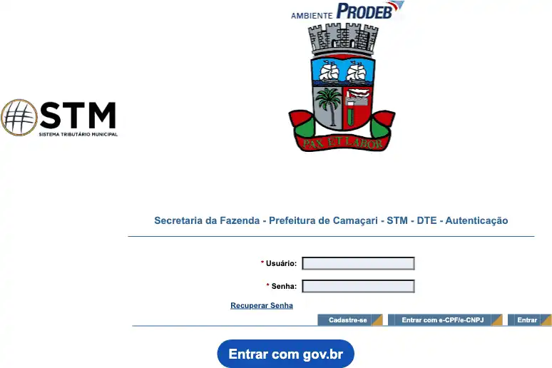 Emite uma Certidão Negativa de Débitos no município de Camaçari - BA, utilizando o login e senha informados.