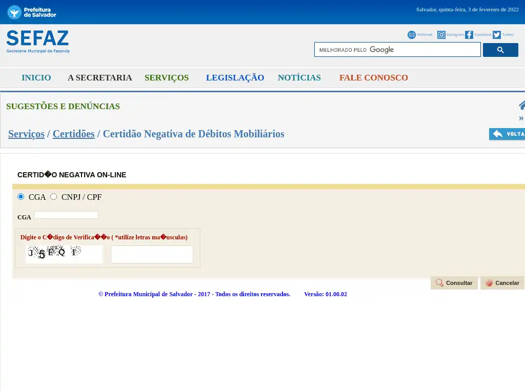 https://www.sefaz.salvador.ba.gov.br/Certidoes/CertidaoRegularPJ?Length=9#gsc.tab=0