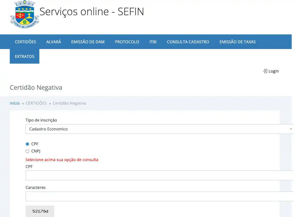 Conheça abaixo o web service (JSON) para consultar Prefeitura / BA / Vitória da Conquista / Certidão Negativa de Débitos.