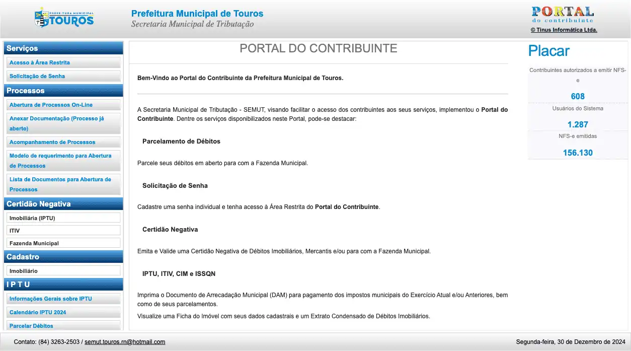 Conheça abaixo o web service (JSON) para consultar Prefeitura / RN / Touros / Certidão Negativa de Débitos.