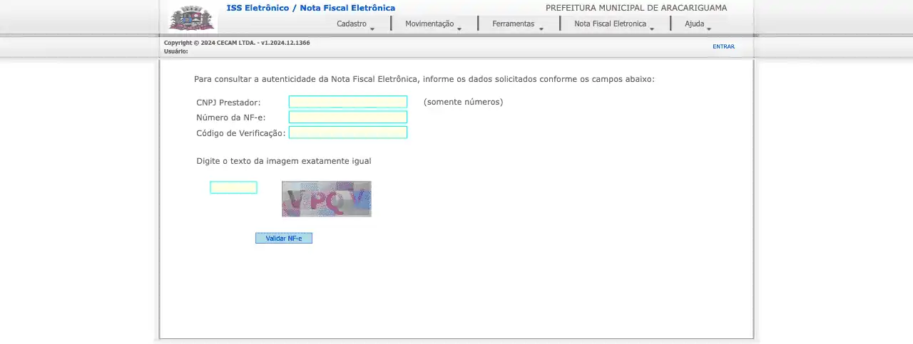 http://portal.aracariguama.sp.gov.br/CECAM.ISSWEB/asp/wfValidaNFE.aspx