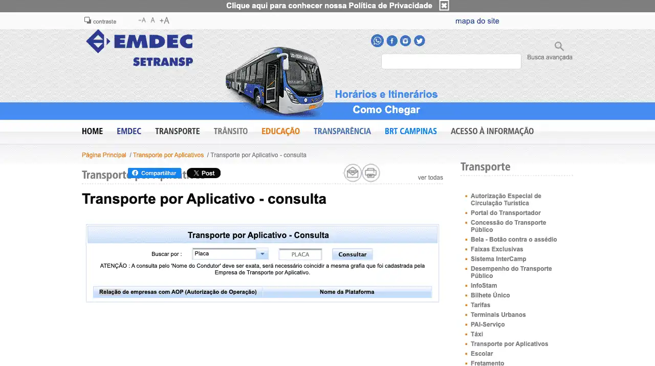 Consulta a regulariedade de motoristas que prestam serviço de transporte por aplicativos em Campinas.