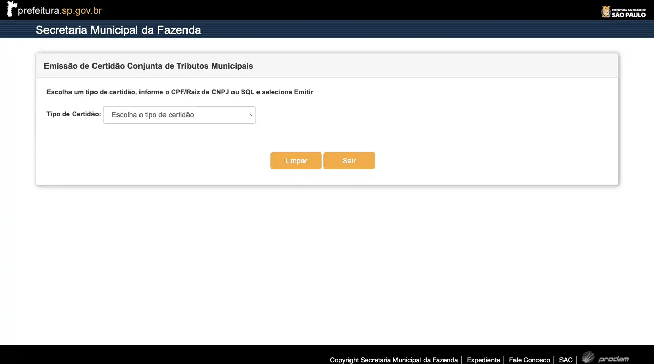 Emite Certidão Tributária Mobiliária na Secretaria Municipal da Fazenda da Prefeitura de São Paulo.