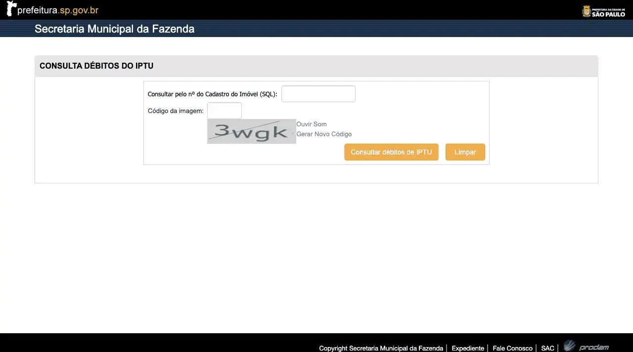 Consulta débitos do IPTU no município de São Paulo (SP) por meio do cadastro do imóvel informado.