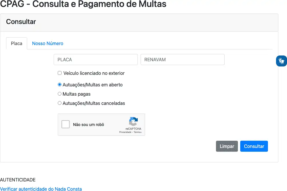 Consulta autuações e multas em aberto na Polícia Rodoviária Federal (PRF).