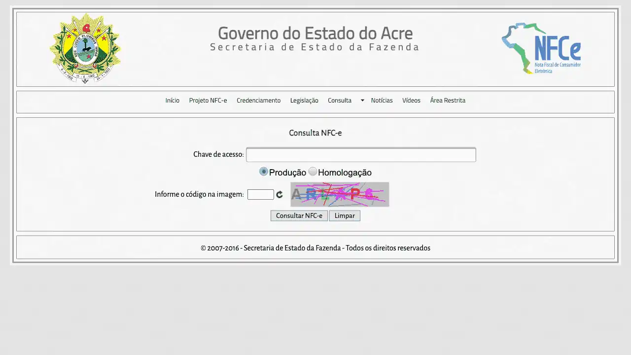 Consulta Nota Fiscal de Consumidor Eletrônica (NFC-e) na Secretaria da Fazenda (SEFAZ) do Estado do Acre (AC).