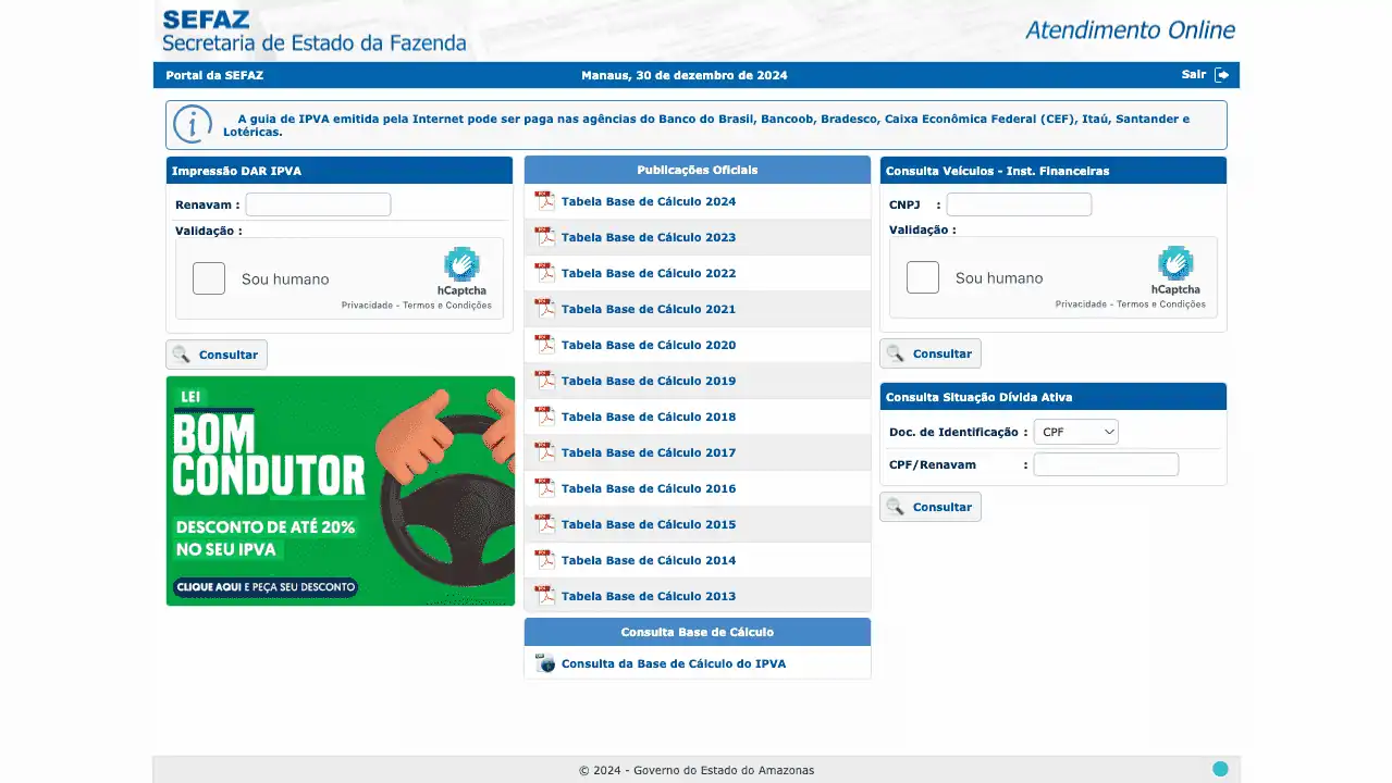 Conheça abaixo o web service (JSON) para consultar SEFAZ / AM / IPVA.