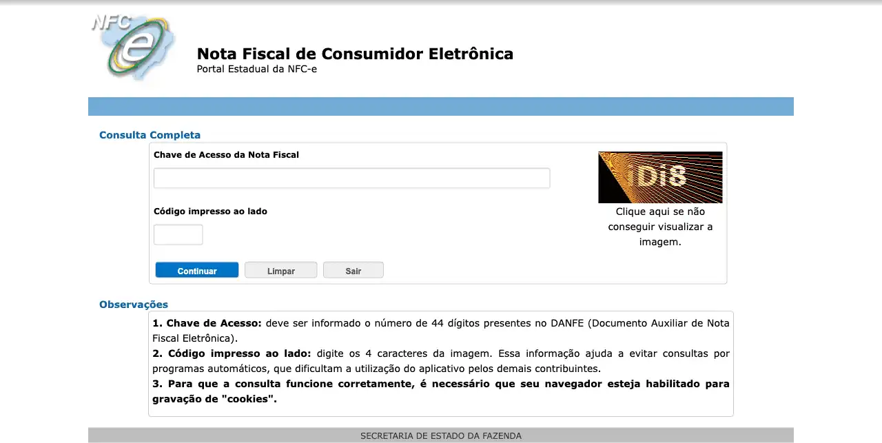 Consulta Nota Fiscal de Consumidor Eletrônica (NFC-e) na Secretaria da Fazenda (SEFAZ) do Estado do Amazonas (AM).
