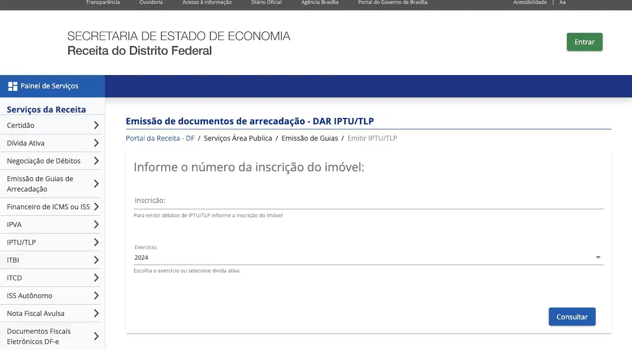 Emite guia de IPTU na secretaria da fazenda (SEFAZ) do distrito federal.