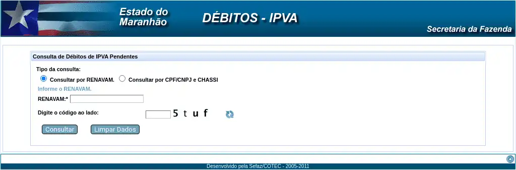 Pesquisa dados de Imposto sobre Propriedades de Veículos Automotores (IPVA), através do número de renavam.