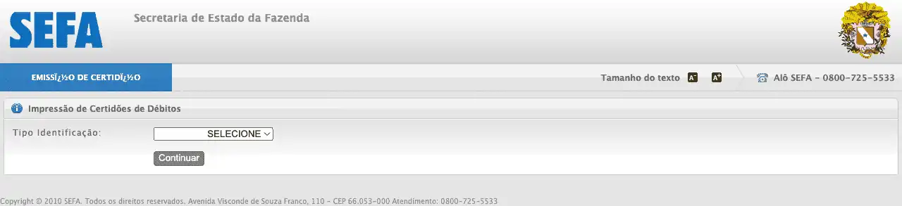 Emite Certidão Negativa de Débitos na SEFAZ PA.