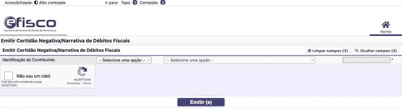 Emite Certidão Negativa de Débitos Fiscais na SEFAZ PE.