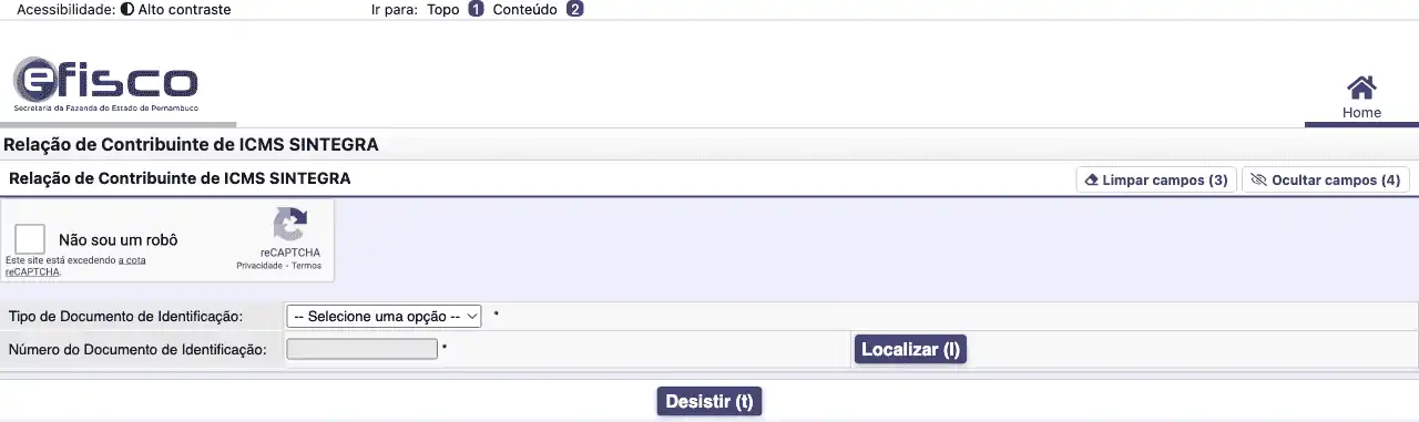 Consulta Relação de Contribuinte de ICMS SINTEGRA