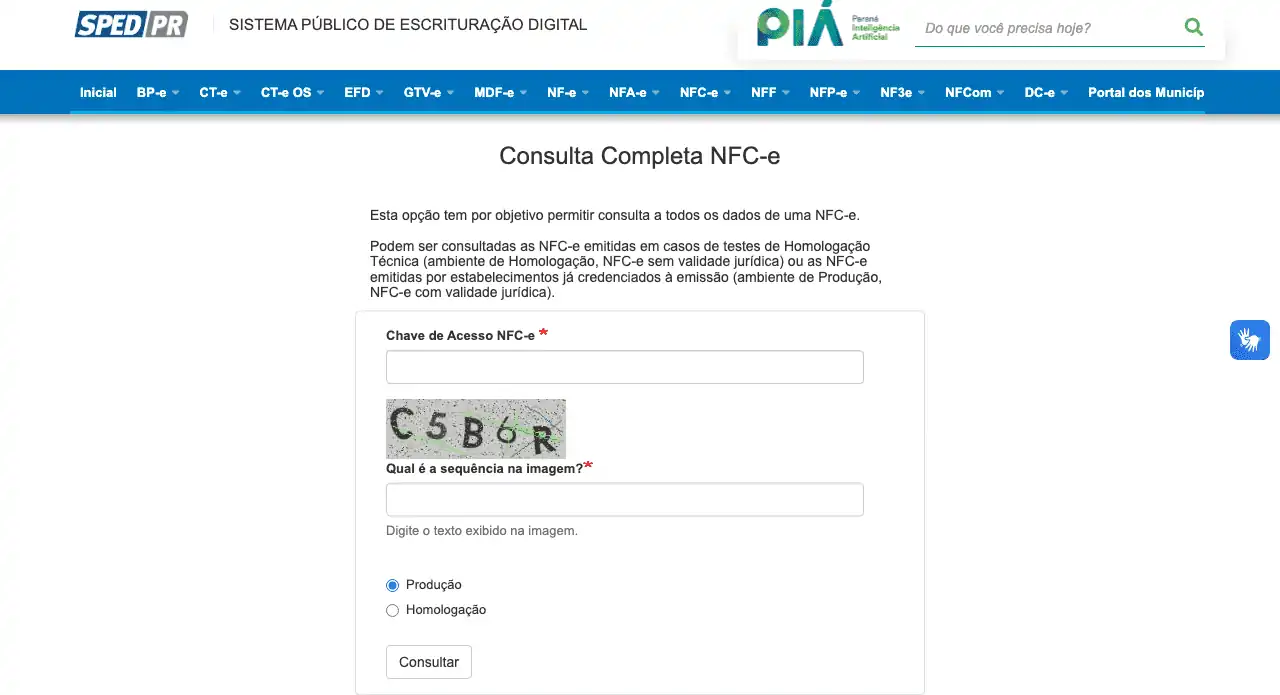 Consulta Nota Fiscal de Consumidor Eletrônica (NFC-e) na Secretaria da Fazenda (SEFAZ) do Estado do Paraná (PR).