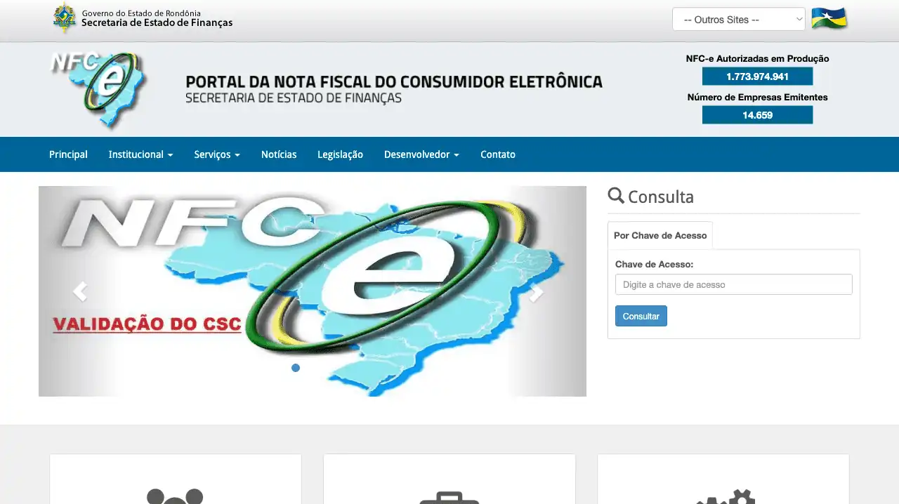 Consulta Nota Fiscal de Consumidor Eletrônica (NFC-e) na Secretaria da Fazenda (SEFAZ) do Estado de Rondônia (RO).
