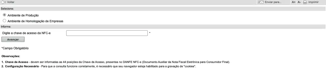 Consulta Nota Fiscal de Consumidor Eletrônica (NFC-e) na Secretaria da Fazenda (SEFAZ) do Estado do Rio Grande do Sul (RS).