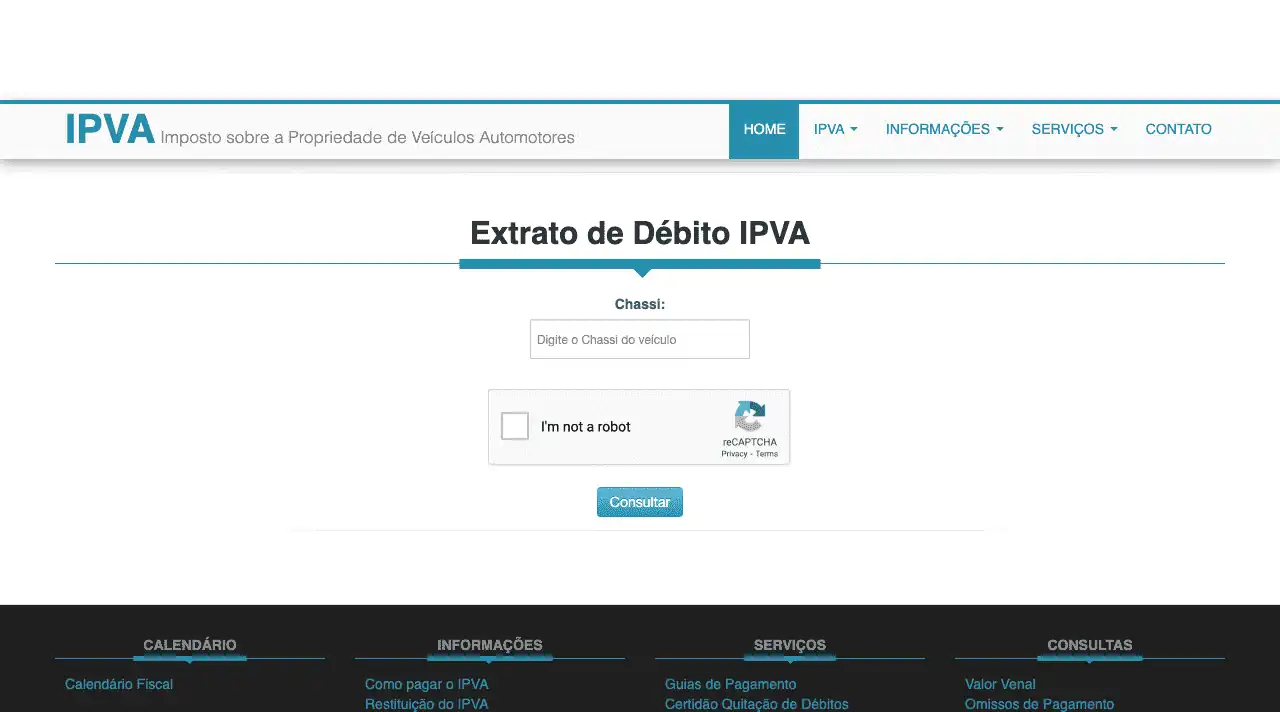 Pode ser usada para consultar o extrato do IPVA de um veículo do estado do Tocantins