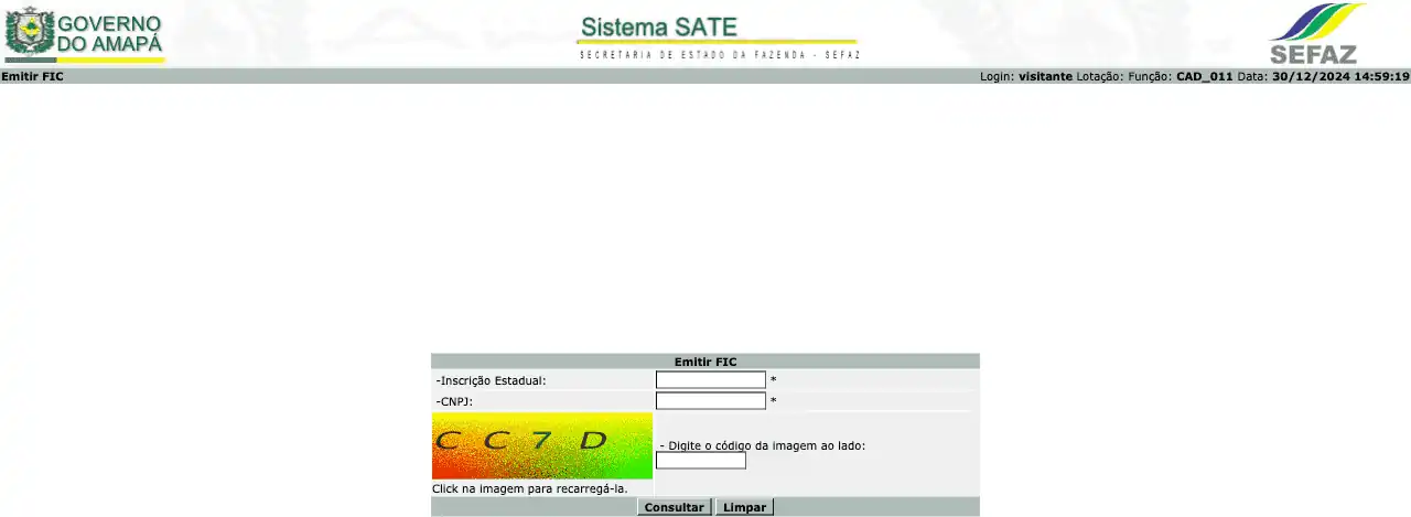 Consulta pública ao SINTEGRA (Sistema Integrado de Informações sobre Operações Interestaduais com Mercadorias e Serviços) do estado do Amapá, que permite verificar a situação do cadastro junto à SEFAZ e o regime de tributação de ICMS.