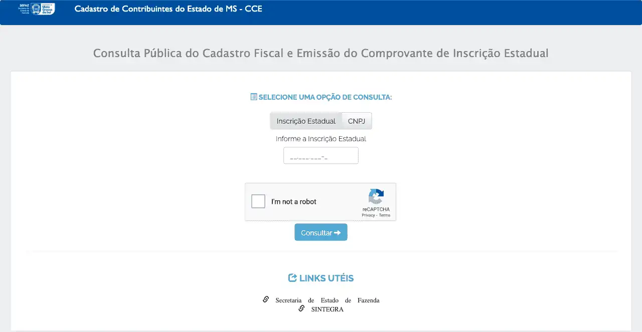 Consulta pública ao SINTEGRA (Sistema Integrado de Informações sobre Operações Interestaduais com Mercadorias e Serviços) do estado do Mato Grosso do Sul, que permite verificar a situação do cadastro junto à SEFAZ e o regime de tributação de ICMS. A API retorna os dados completos da primeira IE (Inscriação Estadual) listada. É necessário chamar a API para cada uma das demais IEs caso deseje obter seus dados completos.