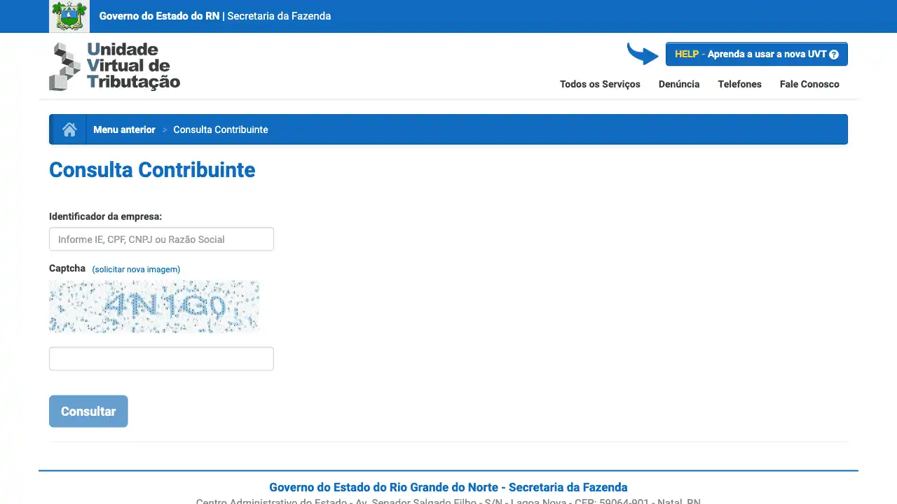 Consulta pública ao SINTEGRA (Sistema Integrado de Informações sobre Operações Interestaduais com Mercadorias e Serviços) do estado do Rio Grande do Norte, que permite verificar a situação do cadastro junto à SEFAZ e o regime de tributação de ICMS.