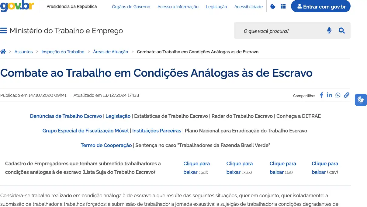 Conheça abaixo o web service (JSON) para consultar Secretaria de Inspeção do Trabalho / Trabalho Escravo.