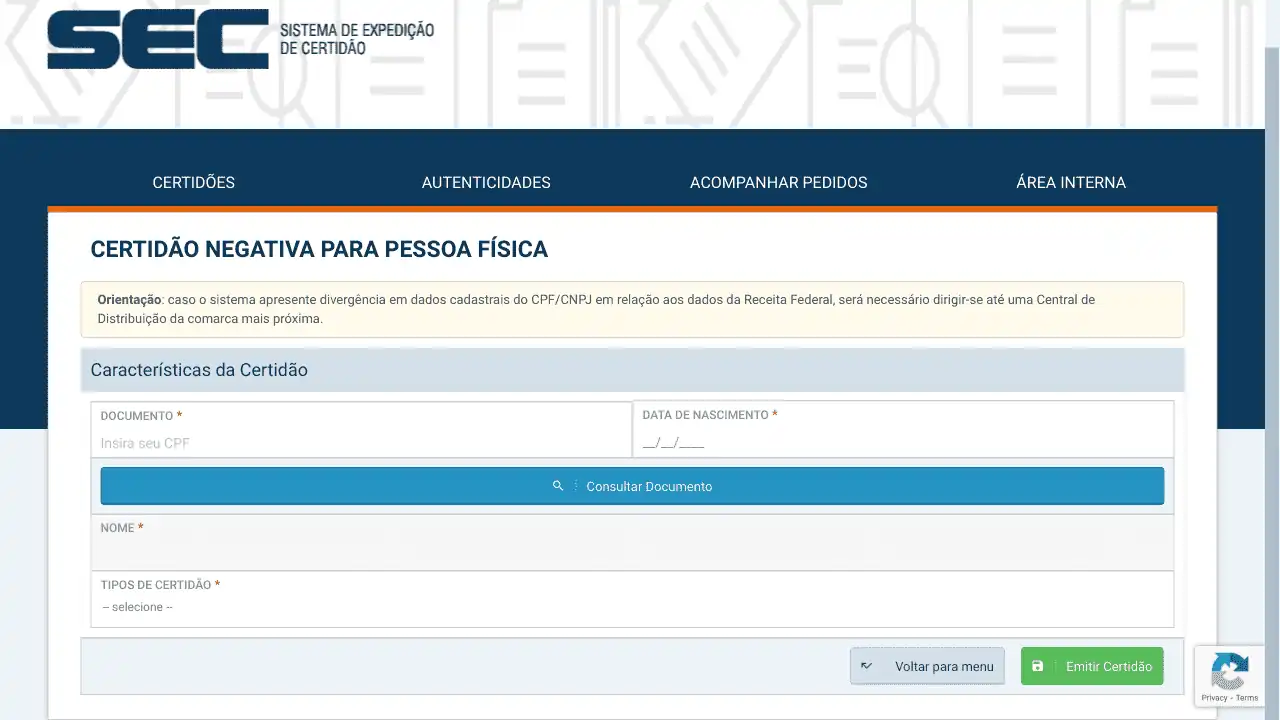 Emite certidões negativas para pessoas físicas no âmbito do Tribunal de Justiça de Mato Grosso.