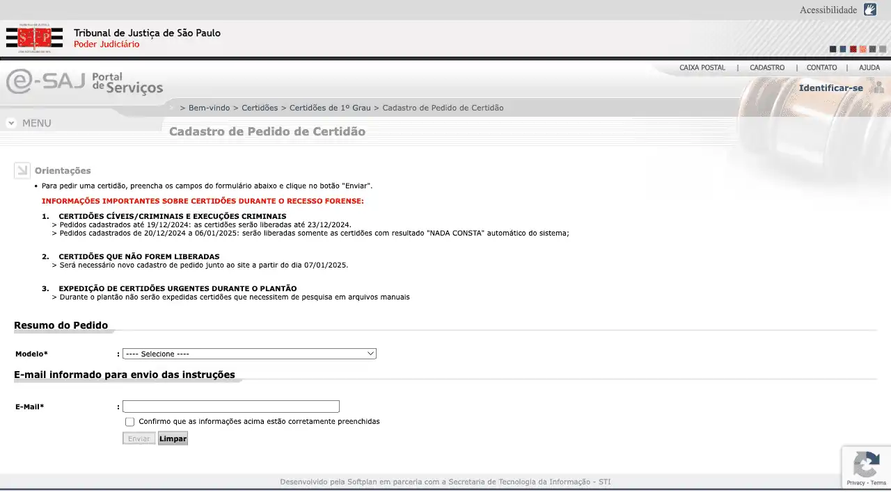 Gera o número de pedido para a obtenção de certidão no TJSP.