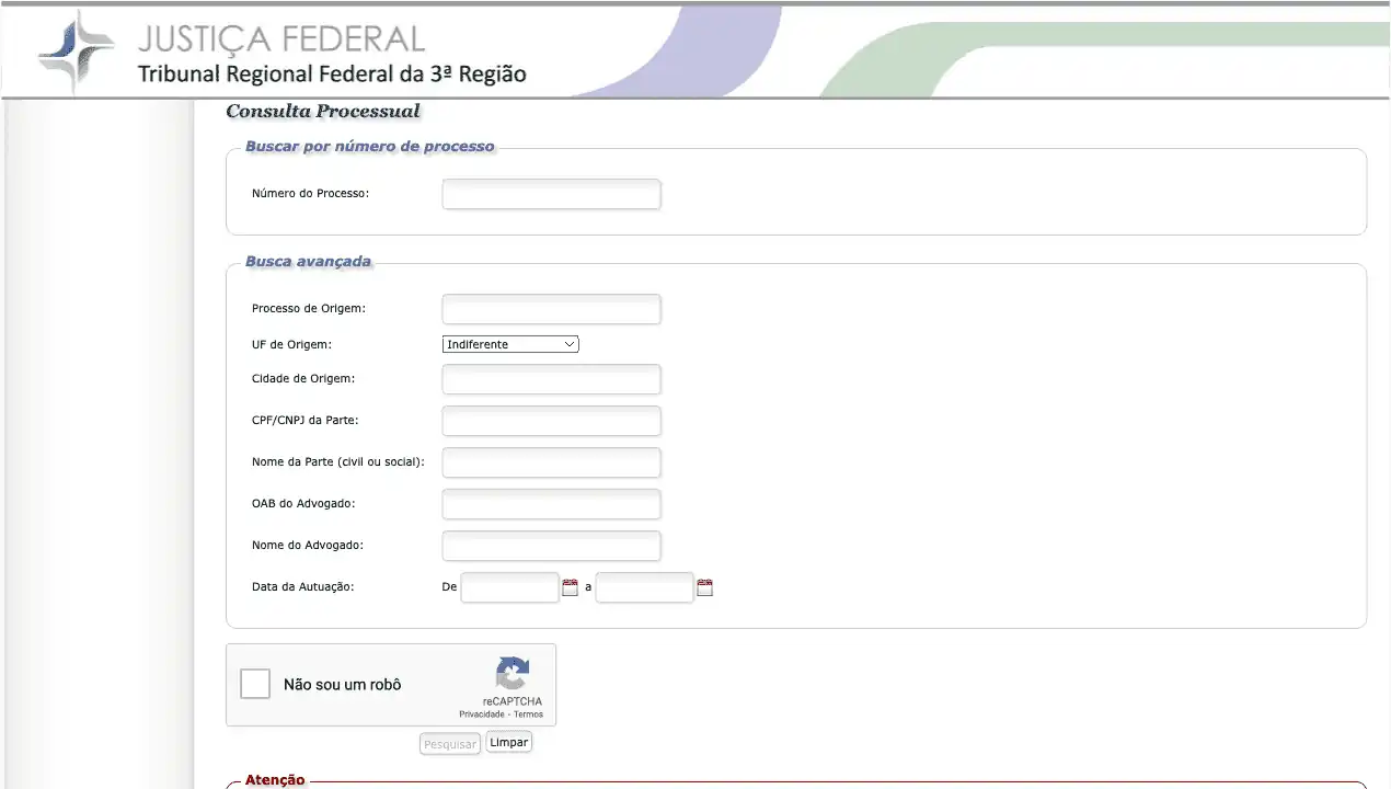 Consulta a situação de processos no TRF-3 (Tribunal Regional Federal da 3ª região).